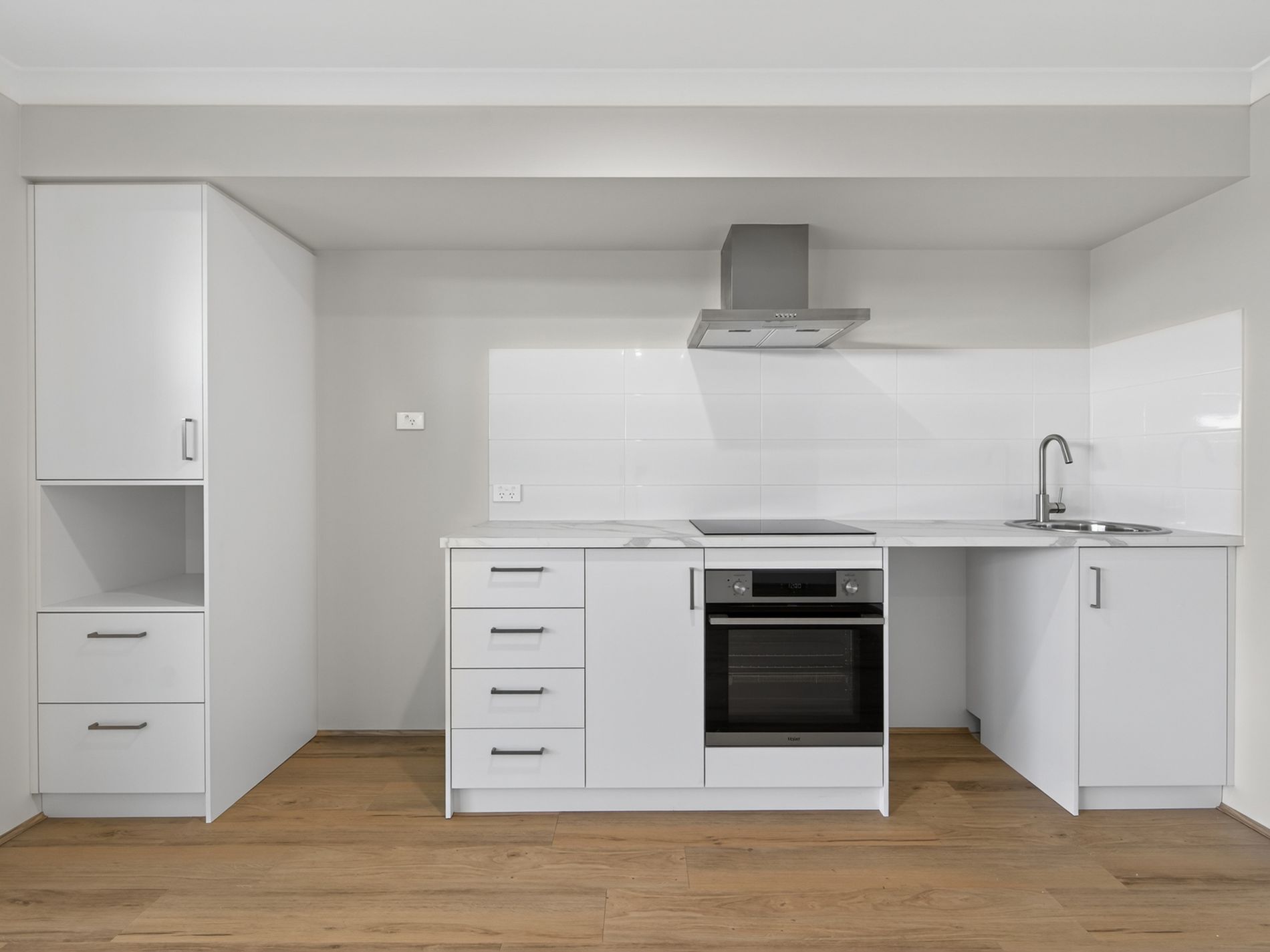 The kitchen is well-appointed with modern appliances and ample storage space, making meal preparation a breeze. The two spacious bedrooms offer a peaceful retreat, each with its own built-in wardrobe for added convenience.