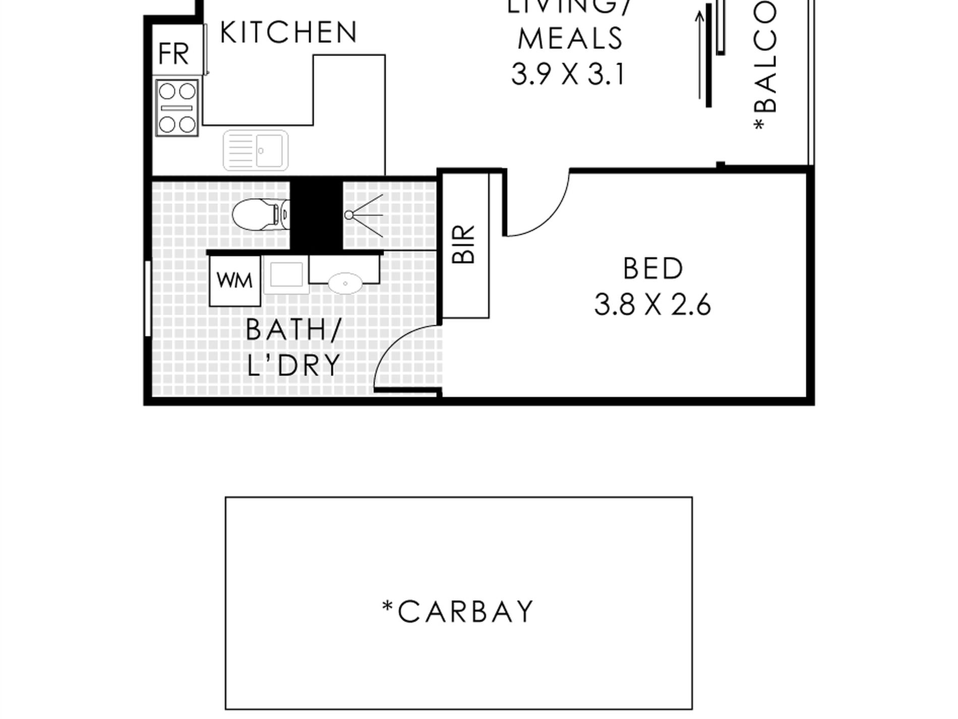 • Total internal area: 45m2 (Incl balcony)